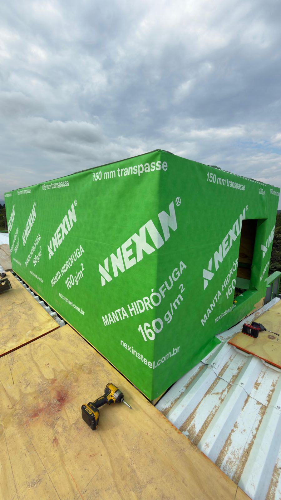 Ela funciona como uma barreira resistente às intempéries, impedindo que a chuva entre no conjunto do telhado ou da parede, permitindo que o vapor de água passe para o exterior.